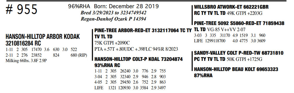Milking 66lbs. 3.8F 2.9P 96%RHA Born: December 28 2019
