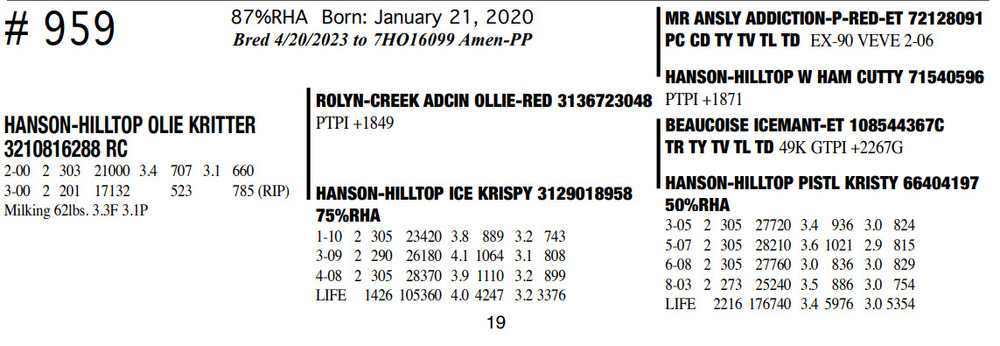 Milking 62lbs. 3.3F 3.1P 87%RHA Born: January 21, 2020