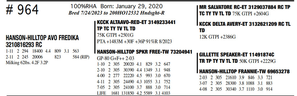 Milking 62lbs. 4.2F 3.2P 100%RHA Born: January 29, 2020