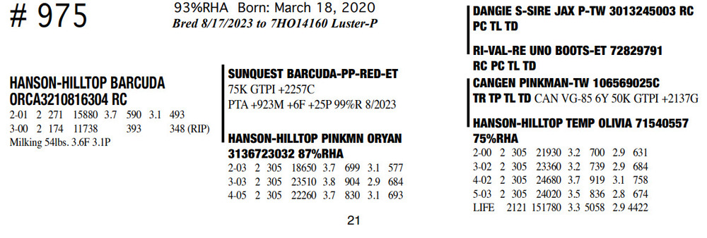Milking 54lbs. 3.6F 3.1P 93%RHA Born: March 18, 2020