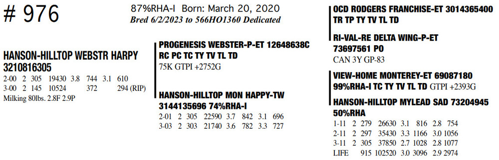 Bred 6/2/2023 to 566HO1360 Dedicated
