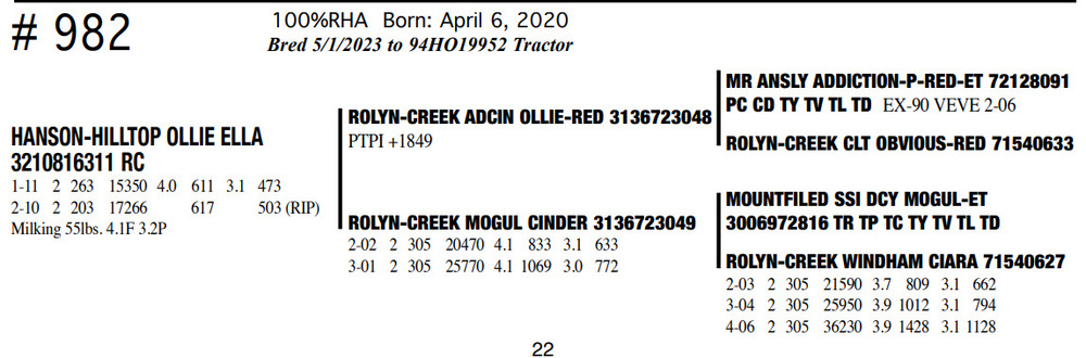Milking 55lbs. 4.1F 3.2P 100%RHA Born: April 6, 2020