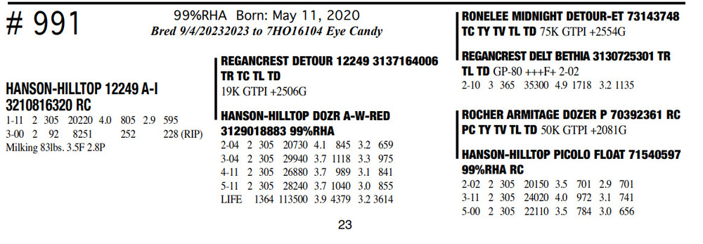 Milking 83lbs. 3.5F 2.8P 99%RHA Born: May 11, 2020