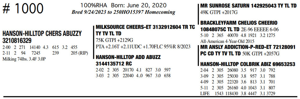 Milking 74lbs. 3.4F 3.0P 100%RHA Born: June 20, 2020