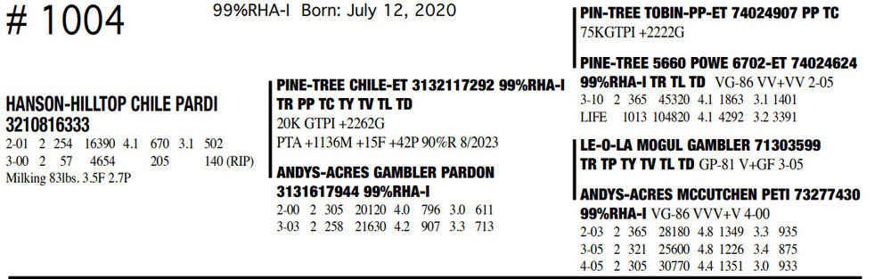 Milking 83lbs. 3.5F 2.7P 99%RHA-I Born: July 12, 2020
