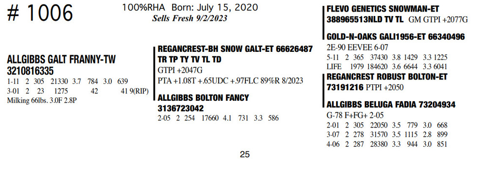 Milking 66lbs. 3.0F 2.8P 100%RHA Born: July 15, 2020