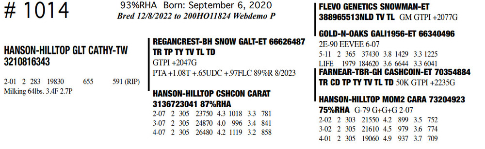 Milking 64lbs. 3.4F 2.7P 93%RHA Born: September 6, 2020