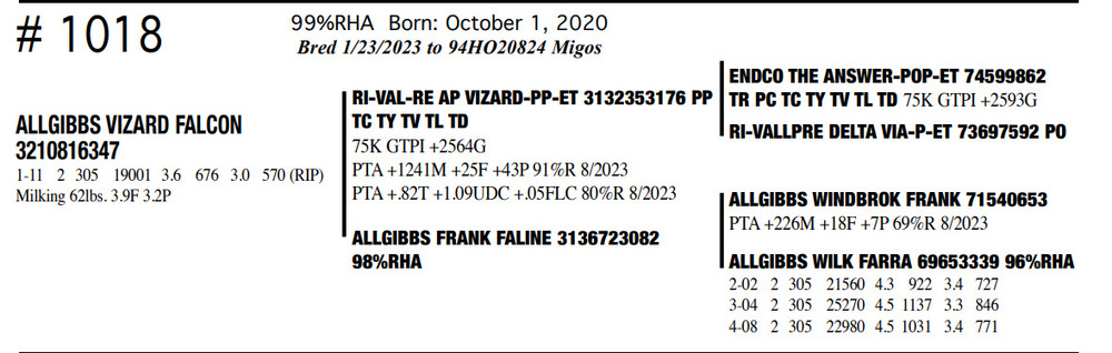 Milking 62lbs. 3.9F 3.2P 99%RHA Born: October 1, 2020