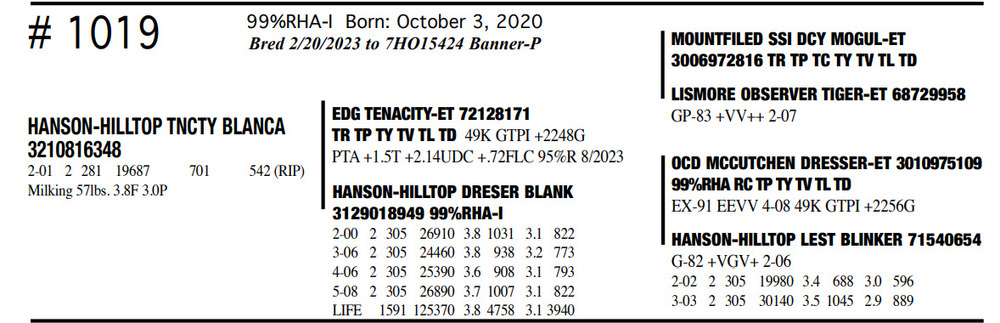 Milking 57lbs. 3.8F 3.0P 99%RHA-I Born: October 3, 2020
