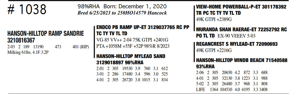 Milking 61lbs. 4.1F 3.2P 98%RHA Born: December 1, 2020