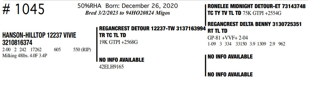 Milking 48lbs. 4.0F 3.4P 50%RHA Born: December 26, 2020