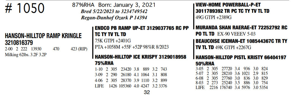 Milking 62lbs. 3.2F 3.2P 87%RHA Born: January 3, 2021