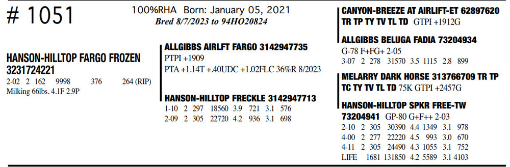 Milking 66lbs. 4.1F 2.9P 100%RHA Born: January 05, 2021