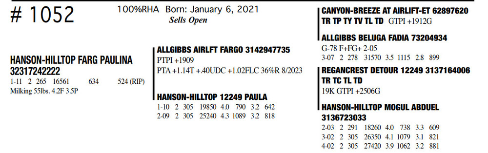 Milking 55lbs. 4.2F 3.5P 100%RHA Born: January 6, 2021