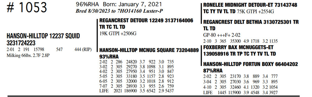 Milking 66lbs. 2.7F 2.8P 96%RHA Born: January 7, 2021