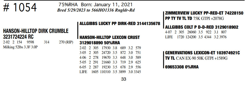 Milking 52lbs 3.3F 3.0P 75%RHA Born: January 11, 2021