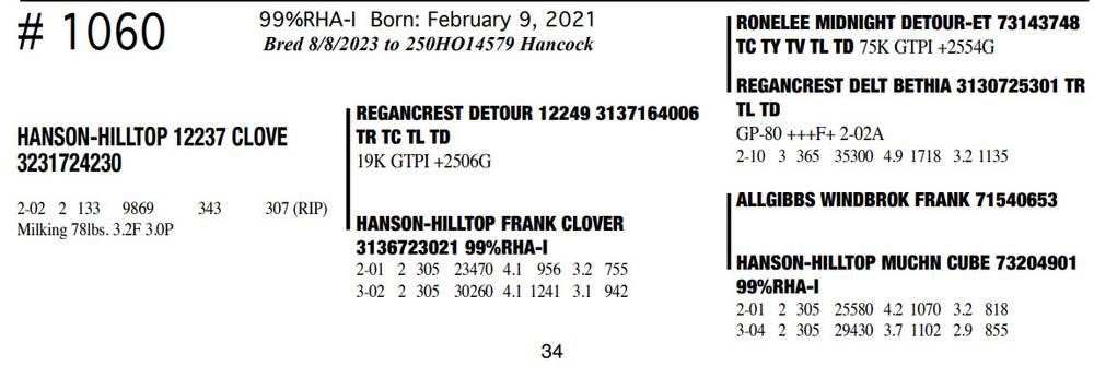 Milking 78lbs. 3.2F 3.0P 99%RHA-I Born: February 9, 2021