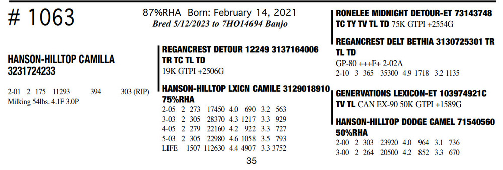 Milking 54lbs. 4.1F 3.0P 87%RHA Born: February 14, 2021