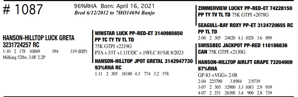 Milking 52lbs. 3.0F 2.2P 96%RHA Born: April 16, 2021