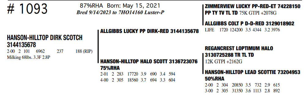 Milking 68lbs. 3.3F 2.8P 87%RHA Born: May 15, 2021