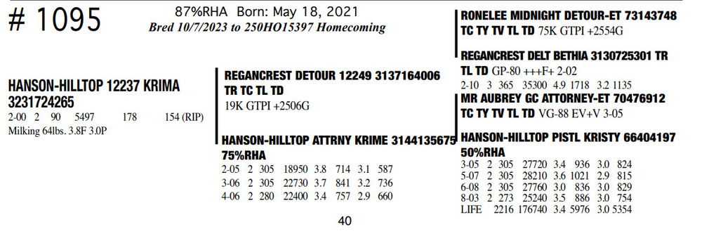 Milking 64lbs. 3.8F 3.0P 87%RHA Born: May 18, 2021