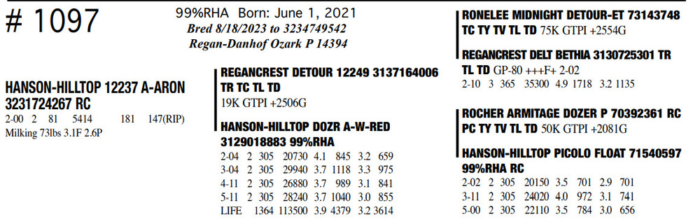 Milking 73lbs 3.1F 2.6P 99%RHA Born: June 1, 2021