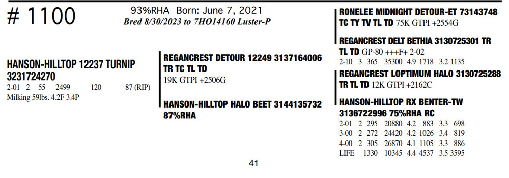 Milking 59lbs. 4.2F 3.4P 93%RHA Born: June 7, 2021