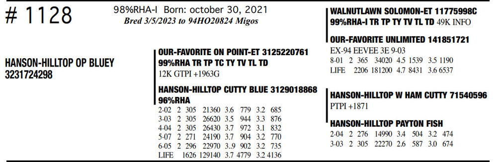 98%RHA-I Born: october 30, 2021 Bred 3/5/2023 to 94HO20824 Migos