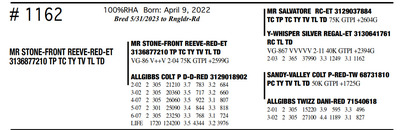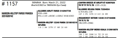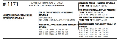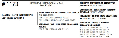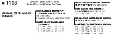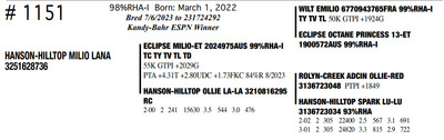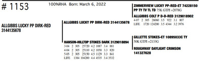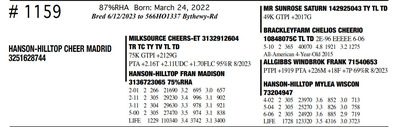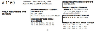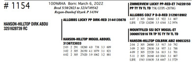 HANSON HILLTOP COMPLETE HERD DISPERSAL 1148 Round Praire Drive, Waukon IA, 52172 Great offering of genetics... Contact Agent: KALEB KRUSE - 563-880-7495 Catalog | Terms of Auction Download CATALOG Download UPDATES Download ADDED LOT 1 Download ADDED LOT 2 Download ADDED LOT 3 Catalog | Terms Download CATALOG Download UPDATES Download ADDED LOT 1 Download ADDED LOT 2 Download ADDED LOT 3 All Items (351) Cattle (351) Categories All Items (351) Cattle (351) Search Item #: Keyword: Search Catalog Item #: Keyword: 20 items per page 50 items per page 100 items per page Go to page #: 8 , 9 , 10 , 11 , 12 , 13 #1151 – HANSON-HILLTOP MILIO LANA 98%RHA-I Born: March 1, 2022 Bred 7/6/2023 to 231724292 Kandy-Bahr ESPN Winner Location: 1148 Round Praire Drive, Waukon IA, 52172 Contact Agent: KALEB KRUSE - 563-880-7495 More Info / Bid Now Track this Item Sold High Bid: $1,400.00 – #30 #1151 – HANSON-HILLTOP MILIO LANA Sold High Bid: $1,400 More Details More Info / Bid Track Item 98%RHA-I Born: March 1, 2022 Bred 7/6/2023 to 231724292 Kandy-Bahr ESPN Winner Location: 1148 Round Praire Drive, Waukon IA, 52172 Contact Agent: KALEB KRUSE - 563-880-7495 #1152 – HANSON-HILLTOP LUCK GRUNGE 93%RHA-I Born: March 2, 2022 Bred 6/8/2023 to 231724292 Kandy-Bahr ESPN Winner Location: 1148 Round Praire Drive, Waukon IA, 52172 Contact Agent: KALEB KRUSE - 563-880-7495 More Info / Bid Now Track this Item Sold High Bid: $1,250.00 – #3 #1152 – HANSON-HILLTOP LUCK GRUNGE Sold High Bid: $1,250 More Details More Info / Bid Track Item 93%RHA-I Born: March 2, 2022 Bred 6/8/2023 to 231724292 Kandy-Bahr ESPN Winner Location: 1148 Round Praire Drive, Waukon IA, 52172 Contact Agent: KALEB KRUSE - 563-880-7495 #1153 – ALLGIBBS LUCKY PP DIRK-RED 100%RHA Born: March 6, 2022 Location: 1148 Round Praire Drive, Waukon IA, 52172 Contact Agent: KALEB KRUSE - 563-880-7495 More Info / Bid Now Track this Item No Bids Starting at $1,000.00 Login to Bid #1153 – ALLGIBBS LUCKY PP DIRK-RED Starting at $1,000.00 Login to Bid More Details More Info / Bid Track Item 100%RHA Born: March 6, 2022 Location: 1148 Round Praire Drive, Waukon IA, 52172 Contact Agent: KALEB KRUSE - 563-880-7495 #1154 – HANSON-HILLTOP DIRK ABDU 100%RHA Born: March 6, 2022 Bred 5/30/2023 to 3234749542 Regan-Danhof Ozark P 14394 Location: 1148 Round Praire Drive, Waukon IA, 52172 Contact Agent: KALEB KRUSE - 563-880-7495 More Info / Bid Now Track this Item Sold High Bid: $1,375.00 – #12 #1154 – HANSON-HILLTOP DIRK ABDU Sold High Bid: $1,375 More Details More Info / Bid Track Item 100%RHA Born: March 6, 2022 Bred 5/30/2023 to 3234749542 Regan-Danhof Ozark P 14394 Location: 1148 Round Praire Drive, Waukon IA, 52172 Contact Agent: KALEB KRUSE - 563-880-7495 #1156 – HANSON-HILLTOP ALFNS DIMMER 84%RHA-I Born: March 16, 2022 Bred 7/6/2023 to 231724292 Kandy-Bahr ESPN Winner Location: 1148 Round Praire Drive, Waukon IA, 52172 Contact Agent: KALEB KRUSE - 563-880-7495 More Info / Bid Now Track this Item Sold High Bid: $1,500.00 – #32 #1156 – HANSON-HILLTOP ALFNS DIMMER Sold High Bid: $1,500 More Details More Info / Bid Track Item 84%RHA-I Born: March 16, 2022 Bred 7/6/2023 to 231724292 Kandy-Bahr ESPN Winner Location: 1148 Round Praire Drive, Waukon IA, 52172 Contact Agent: KALEB KRUSE - 563-880-7495 #1157 – HANSON-HILLTOP FARGO PANGEA 98%RHA Born: March 21, 2022 Bred 6/2/2023 to 7HO16104 Eye Candy Location: 1148 Round Praire Drive, Waukon IA, 52172 Contact Agent: KALEB KRUSE - 563-880-7495 More Info / Bid Now Track this Item Sold High Bid: $1,400.00 – #32 #1157 – HANSON-HILLTOP FARGO PANGEA Sold High Bid: $1,400 More Details More Info / Bid Track Item 98%RHA Born: March 21, 2022 Bred 6/2/2023 to 7HO16104 Eye Candy Location: 1148 Round Praire Drive, Waukon IA, 52172 Contact Agent: KALEB KRUSE - 563-880-7495 #1158 – HANSON-HILLTOP BANKS JACKEL 99%RHA Born: March 23, 2022 Bred 7/6/2023 to 231724292 Kandy-Bahr ESPN Winner Location: 1148 Round Praire Drive, Waukon IA, 52172 Contact Agent: KALEB KRUSE - 563-880-7495 More Info / Bid Now Track this Item Sold High Bid: $1,450.00 – #30 #1158 – HANSON-HILLTOP BANKS JACKEL Sold High Bid: $1,450 More Details More Info / Bid Track Item 99%RHA Born: March 23, 2022 Bred 7/6/2023 to 231724292 Kandy-Bahr ESPN Winner Location: 1148 Round Praire Drive, Waukon IA, 52172 Contact Agent: KALEB KRUSE - 563-880-7495 #1159 – HANSON-HILLTOP CHEER MADRID 87%RHA Born: March 24, 2022 Bred 6/12/2023 to 566HO1337 Bythewy-Rd Location: 1148 Round Praire Drive, Waukon IA, 52172 Contact Agent: KALEB KRUSE - 563-880-7495 More Info / Bid Now Track this Item Sold High Bid: $1,350.00 – #3 #1159 – HANSON-HILLTOP CHEER MADRID Sold High Bid: $1,350 More Details More Info / Bid Track Item 87%RHA Born: March 24, 2022 Bred 6/12/2023 to 566HO1337 Bythewy-Rd Location: 1148 Round Praire Drive, Waukon IA, 52172 Contact Agent: KALEB KRUSE - 563-880-7495 #1160 – HANSON-HILLTOP CHEERS MARY 100%RHA Born: March 26, 2022 Bred 8/21/2023 to 250HO14579 Hancock Location: 1148 Round Praire Drive, Waukon IA, 52172 Contact Agent: KALEB KRUSE - 563-880-7495 More Info / Bid Now Track this Item Sold High Bid: $1,350.00 – #32 #1160 – HANSON-HILLTOP CHEERS MARY Sold High Bid: $1,350 More Details More Info / Bid Track Item 100%RHA Born: March 26, 2022 Bred 8/21/2023 to 250HO14579 Hancock Location: 1148 Round Praire Drive, Waukon IA, 52172 Contact Agent: KALEB KRUSE - 563-880-7495 #1161 – HANSON-HILLTOP PRISN HARPER 93%RHA-I Born: March 29, 2022 Bred 8/26/2023 to 7HO15825 Rebel-Red Location: 1148 Round Praire Drive, Waukon IA, 52172 Contact Agent: KALEB KRUSE - 563-880-7495 More Info / Bid Now Track this Item Sold High Bid: $1,350.00 – #3 #1161 – HANSON-HILLTOP PRISN HARPER Sold High Bid: $1,350 More Details More Info / Bid Track Item 93%RHA-I Born: March 29, 2022 Bred 8/26/2023 to 7HO15825 Rebel-Red Location: 1148 Round Praire Drive, Waukon IA, 52172 Contact Agent: KALEB KRUSE - 563-880-7495 #1162 – MR STONE-FRONT REEVE-RED-ET 100%RHA Born: 