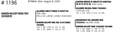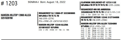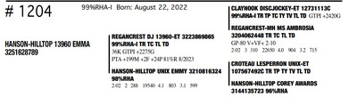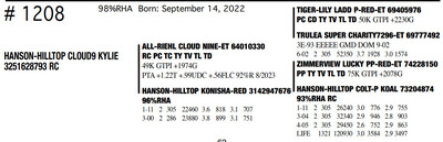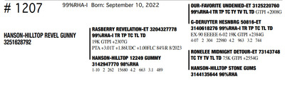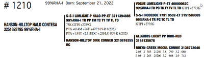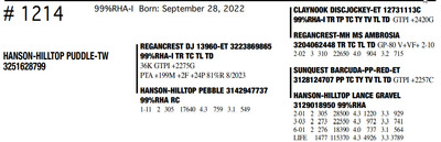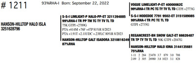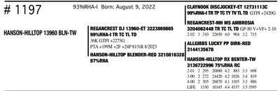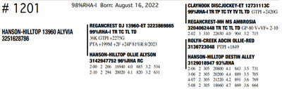 HANSON HILLTOP COMPLETE HERD DISPERSAL 1148 Round Praire Drive, Waukon IA, 52172 Great offering of genetics... Contact Agent: KALEB KRUSE - 563-880-7495 Catalog | Terms of Auction Download CATALOG Download UPDATES Download ADDED LOT 1 Download ADDED LOT 2 Download ADDED LOT 3 Catalog | Terms Download CATALOG Download UPDATES Download ADDED LOT 1 Download ADDED LOT 2 Download ADDED LOT 3 All Items (351) Cattle (351) Categories All Items (351) Cattle (351) Search Item #: Keyword: Search Catalog Item #: Keyword: 20 items per page 50 items per page 100 items per page Go to page #: 10 , 11 , 12 , 13 , 14 , 15 #1196 – HANSON-HILLTOP FARGO TATE 87%RHA Born: August 8, 2022 Location: 1148 Round Praire Drive, Waukon IA, 52172 Contact Agent: KALEB KRUSE - 563-880-7495 More Info / Bid Now Track this Item Sold High Bid: $1,100.00 – #6 #1196 – HANSON-HILLTOP FARGO TATE Sold High Bid: $1,100 More Details More Info / Bid Track Item 87%RHA Born: August 8, 2022 Location: 1148 Round Praire Drive, Waukon IA, 52172 Contact Agent: KALEB KRUSE - 563-880-7495 #1197 – HANSON-HILLTOP 13960 BLN-TW 93%RHA-I Born: August 9, 2022 Location: 1148 Round Praire Drive, Waukon IA, 52172 Contact Agent: KALEB KRUSE - 563-880-7495 More Info / Bid Now Track this Item Sold High Bid: $925.00 – #6 #1197 – HANSON-HILLTOP 13960 BLN-TW Sold High Bid: $925 More Details More Info / Bid Track Item 93%RHA-I Born: August 9, 2022 Location: 1148 Round Praire Drive, Waukon IA, 52172 Contact Agent: KALEB KRUSE - 563-880-7495 #1198 – HANSON-HILLTOP 13960 BLD-TW 93%RHA-I Born: August 9, 2022 Location: 1148 Round Praire Drive, Waukon IA, 52172 Contact Agent: KALEB KRUSE - 563-880-7495 More Info / Bid Now Track this Item Sold High Bid: $1,100.00 – #39 #1198 – HANSON-HILLTOP 13960 BLD-TW Sold High Bid: $1,100 More Details More Info / Bid Track Item 93%RHA-I Born: August 9, 2022 Location: 1148 Round Praire Drive, Waukon IA, 52172 Contact Agent: KALEB KRUSE - 563-880-7495 #1199 – HANSON-HILLTOP FARGO OLAF 99%RHA Born: August 9, 2022 Location: 1148 Round Praire Drive, Waukon IA, 52172 Contact Agent: KALEB KRUSE - 563-880-7495 More Info / Bid Now Track this Item Sold High Bid: $1,100.00 – #39 #1199 – HANSON-HILLTOP FARGO OLAF Sold High Bid: $1,100 More Details More Info / Bid Track Item 99%RHA Born: August 9, 2022 Location: 1148 Round Praire Drive, Waukon IA, 52172 Contact Agent: KALEB KRUSE - 563-880-7495 #1200 – HANSON-HILLTOP 13960 LIV 93%RHA-I Born: August 10, 2022 Location: 1148 Round Praire Drive, Waukon IA, 52172 Contact Agent: KALEB KRUSE - 563-880-7495 More Info / Bid Now Track this Item No Bids Starting at $1,000.00 Login to Bid #1200 – HANSON-HILLTOP 13960 LIV Starting at $1,000.00 Login to Bid More Details More Info / Bid Track Item 93%RHA-I Born: August 10, 2022 Location: 1148 Round Praire Drive, Waukon IA, 52172 Contact Agent: KALEB KRUSE - 563-880-7495 #1201 – HANSON-HILLTOP 13960 ALYVIA 98%RHA-I Born: August 16, 2022 Location: 1148 Round Praire Drive, Waukon IA, 52172 Contact Agent: KALEB KRUSE - 563-880-7495 More Info / Bid Now Track this Item Sold High Bid: $1,100.00 – #6 #1201 – HANSON-HILLTOP 13960 ALYVIA Sold High Bid: $1,100 More Details More Info / Bid Track Item 98%RHA-I Born: August 16, 2022 Location: 1148 Round Praire Drive, Waukon IA, 52172 Contact Agent: KALEB KRUSE - 563-880-7495 #1202 – HANSON-HILLTOP 13960 CARIS 96%RHA-I Born: August 18, 2022 Location: 1148 Round Praire Drive, Waukon IA, 52172 Contact Agent: KALEB KRUSE - 563-880-7495 More Info / Bid Now Track this Item Sold High Bid: $1,100.00 – #39 #1202 – HANSON-HILLTOP 13960 CARIS Sold High Bid: $1,100 More Details More Info / Bid Track Item 96%RHA-I Born: August 18, 2022 Location: 1148 Round Praire Drive, Waukon IA, 52172 Contact Agent: KALEB KRUSE - 563-880-7495 #1203 – HANSON-HILLTOP 13960 ALLEA 96%RHA-I Born: August 18, 2022 Location: 1148 Round Praire Drive, Waukon IA, 52172 Contact Agent: KALEB KRUSE - 563-880-7495 More Info / Bid Now Track this Item Sold High Bid: $1,100.00 – #30 #1203 – HANSON-HILLTOP 13960 ALLEA Sold High Bid: $1,100 More Details More Info / Bid Track Item 96%RHA-I Born: August 18, 2022 Location: 1148 Round Praire Drive, Waukon IA, 52172 Contact Agent: KALEB KRUSE - 563-880-7495 #1204 – HANSON-HILLTOP 13960 EMMA 99%RHA-I Born: August 22, 2022 Location: 1148 Round Praire Drive, Waukon IA, 52172 Contact Agent: KALEB KRUSE - 563-880-7495 More Info / Bid Now Track this Item No Bids Starting at $1,000.00 Login to Bid #1204 – HANSON-HILLTOP 13960 EMMA Starting at $1,000.00 Login to Bid More Details More Info / Bid Track Item 99%RHA-I Born: August 22, 2022 Location: 1148 Round Praire Drive, Waukon IA, 52172 Contact Agent: KALEB KRUSE - 563-880-7495 #1205 – HANSON-HILLTOP 13960 OPERA 99%RHA-I Born: September 1, 2022 Location: 1148 Round Praire Drive, Waukon IA, 52172 Contact Agent: KALEB KRUSE - 563-880-7495 More Info / Bid Now Track this Item Sold High Bid: $1,100.00 – #39 #1205 – HANSON-HILLTOP 13960 OPERA Sold High Bid: $1,100 More Details More Info / Bid Track Item 99%RHA-I Born: September 1, 2022 Location: 1148 Round Praire Drive, Waukon IA, 52172 Contact Agent: KALEB KRUSE - 563-880-7495 #1206 – HANSON-HILLTOP LETSGO MAY 96%RHA Born: September 7, 2022 Location: 1148 Round Praire Drive, Waukon IA, 52172 Contact Agent: KALEB KRUSE - 563-880-7495 More Info / Bid Now Track this Item Sold High Bid: $1,100.00 – #6 #1206 – HANSON-HILLTOP LETSGO MAY Sold High Bid: $1,100 More Details More Info / Bid Track Item 96%RHA Born: September 7, 2022 Location: 1148 Round Praire Drive, Waukon IA, 52172 Contact Agent: KALEB KRUSE - 563-880-7495 #1207 – HANSON-HILLTOP REVEL GUNNY 99%RHA-I Born: September 10, 2022 Location: 1148 Round Praire Drive, Waukon IA, 52172 Contact Agent: KALEB KRUSE - 563-880-7495 More Info / Bid Now Track this Item Sold High Bid: $1,025.00 – #7 #1207 – HANSON-HILLTOP REVEL GUNNY Sold High Bid: $1,025 More Details More Info / Bid Track Item 99%RHA-I Born: September 10, 20
