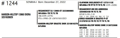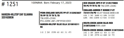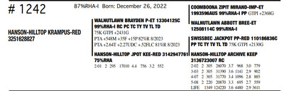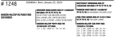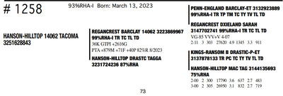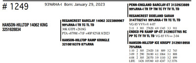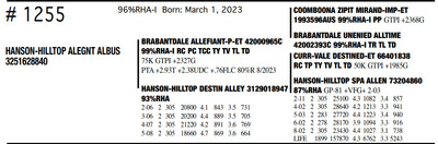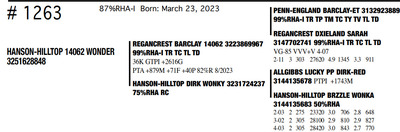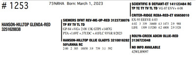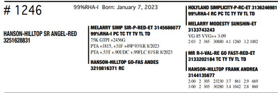 HANSON HILLTOP COMPLETE HERD DISPERSAL 1148 Round Praire Drive, Waukon IA, 52172 Great offering of genetics... Contact Agent: KALEB KRUSE - 563-880-7495 Catalog | Terms of Auction Download CATALOG Download UPDATES Download ADDED LOT 1 Download ADDED LOT 2 Download ADDED LOT 3 Catalog | Terms Download CATALOG Download UPDATES Download ADDED LOT 1 Download ADDED LOT 2 Download ADDED LOT 3 All Items (351) Cattle (351) Categories All Items (351) Cattle (351) Search Item #: Keyword: Search Catalog Item #: Keyword: 20 items per page 50 items per page 100 items per page Go to page #: 12 , 13 , 14 , 15 , 16 , 17 #1241 – HANSON-HILLTOP BTW MERMAID 99%RHA Born: December 20, 2022 Location: 1148 Round Praire Drive, Waukon IA, 52172 Contact Agent: KALEB KRUSE - 563-880-7495 More Info / Bid Now Track this Item Sold High Bid: $800.00 – #7 #1241 – HANSON-HILLTOP BTW MERMAID Sold High Bid: $800 More Details More Info / Bid Track Item 99%RHA Born: December 20, 2022 Location: 1148 Round Praire Drive, Waukon IA, 52172 Contact Agent: KALEB KRUSE - 563-880-7495 #1242 – HANSON-HILLTOP KRAMPUS-RED 87%RHA-I Born: December 26, 2022 Location: 1148 Round Praire Drive, Waukon IA, 52172 Contact Agent: KALEB KRUSE - 563-880-7495 More Info / Bid Now Track this Item Sold High Bid: $1,075.00 – #39 #1242 – HANSON-HILLTOP KRAMPUS-RED Sold High Bid: $1,075 More Details More Info / Bid Track Item 87%RHA-I Born: December 26, 2022 Location: 1148 Round Praire Drive, Waukon IA, 52172 Contact Agent: KALEB KRUSE - 563-880-7495 #1243 – HANSON-HILLTOP NBLUS ANDRIE 99%RHA-I Born: December 27, 2022 Location: 1148 Round Praire Drive, Waukon IA, 52172 Contact Agent: KALEB KRUSE - 563-880-7495 More Info / Bid Now Track this Item Sold High Bid: $775.00 – #7 #1243 – HANSON-HILLTOP NBLUS ANDRIE Sold High Bid: $775 More Details More Info / Bid Track Item 99%RHA-I Born: December 27, 2022 Location: 1148 Round Praire Drive, Waukon IA, 52172 Contact Agent: KALEB KRUSE - 563-880-7495 #1244 – HANSON-HILLTOP 13960 DIORA 92%RHA-I Born: December 27, 2022 Location: 1148 Round Praire Drive, Waukon IA, 52172 Contact Agent: KALEB KRUSE - 563-880-7495 More Info / Bid Now Track this Item Sold High Bid: $775.00 – #18 #1244 – HANSON-HILLTOP 13960 DIORA Sold High Bid: $775 More Details More Info / Bid Track Item 92%RHA-I Born: December 27, 2022 Location: 1148 Round Praire Drive, Waukon IA, 52172 Contact Agent: KALEB KRUSE - 563-880-7495 #1245 – HANSON-HILLTOP 14062 SIRIUS 99%RHA-I Born: January 3, 2023 Location: 1148 Round Praire Drive, Waukon IA, 52172 Contact Agent: KALEB KRUSE - 563-880-7495 More Info / Bid Now Track this Item Sold High Bid: $800.00 – #26 #1245 – HANSON-HILLTOP 14062 SIRIUS Sold High Bid: $800 More Details More Info / Bid Track Item 99%RHA-I Born: January 3, 2023 Location: 1148 Round Praire Drive, Waukon IA, 52172 Contact Agent: KALEB KRUSE - 563-880-7495 #1246 – HANSON-HILLTOP SR ANGEL-RED 99%RHA-I Born: January 7, 2023 Location: 1148 Round Praire Drive, Waukon IA, 52172 Contact Agent: KALEB KRUSE - 563-880-7495 More Info / Bid Now Track this Item Sold High Bid: $950.00 – #29 #1246 – HANSON-HILLTOP SR ANGEL-RED Sold High Bid: $950 More Details More Info / Bid Track Item 99%RHA-I Born: January 7, 2023 Location: 1148 Round Praire Drive, Waukon IA, 52172 Contact Agent: KALEB KRUSE - 563-880-7495 #1248 – HANSON-HILLTOP RG PUDGY-RED 93%RHA-I Born: January 22, 2023 Location: 1148 Round Praire Drive, Waukon IA, 52172 Contact Agent: KALEB KRUSE - 563-880-7495 More Info / Bid Now Track this Item Sold High Bid: $925.00 – #39 #1248 – HANSON-HILLTOP RG PUDGY-RED Sold High Bid: $925 More Details More Info / Bid Track Item 93%RHA-I Born: January 22, 2023 Location: 1148 Round Praire Drive, Waukon IA, 52172 Contact Agent: KALEB KRUSE - 563-880-7495 #1249 – HANSON-HILLTOP 14062 KING 93%RHA-I Born: January 29, 2023 Location: 1148 Round Praire Drive, Waukon IA, 52172 Contact Agent: KALEB KRUSE - 563-880-7495 More Info / Bid Now Track this Item Sold High Bid: $775.00 – #26 #1249 – HANSON-HILLTOP 14062 KING Sold High Bid: $775 More Details More Info / Bid Track Item 93%RHA-I Born: January 29, 2023 Location: 1148 Round Praire Drive, Waukon IA, 52172 Contact Agent: KALEB KRUSE - 563-880-7495 #1250 – HANSON-HILLTOP NEBUL AURORA 92%RHA-I Born: February 8, 2023 Location: 1148 Round Praire Drive, Waukon IA, 52172 Contact Agent: KALEB KRUSE - 563-880-7495 More Info / Bid Now Track this Item Sold High Bid: $800.00 – #30 #1250 – HANSON-HILLTOP NEBUL AURORA Sold High Bid: $800 More Details More Info / Bid Track Item 92%RHA-I Born: February 8, 2023 Location: 1148 Round Praire Drive, Waukon IA, 52172 Contact Agent: KALEB KRUSE - 563-880-7495 #1251 – HANSON-HILLTOP DAY ELIANNA 100%RHA Born: February 17, 2023 Location: 1148 Round Praire Drive, Waukon IA, 52172 Contact Agent: KALEB KRUSE - 563-880-7495 More Info / Bid Now Track this Item Sold High Bid: $650.00 – #26 #1251 – HANSON-HILLTOP DAY ELIANNA Sold High Bid: $650 More Details More Info / Bid Track Item 100%RHA Born: February 17, 2023 Location: 1148 Round Praire Drive, Waukon IA, 52172 Contact Agent: KALEB KRUSE - 563-880-7495 #1252 – HANSON-HILLTOP 13960PRISILA 99%RHA-I Born: March 1, 2023 Location: 1148 Round Praire Drive, Waukon IA, 52172 Contact Agent: KALEB KRUSE - 563-880-7495 More Info / Bid Now Track this Item Sold High Bid: $800.00 – #38 #1252 – HANSON-HILLTOP 13960PRISILA Sold High Bid: $800 More Details More Info / Bid Track Item 99%RHA-I Born: March 1, 2023 Location: 1148 Round Praire Drive, Waukon IA, 52172 Contact Agent: KALEB KRUSE - 563-880-7495 #1253 – HANSON-HILLTOP GLENDA-RED 75%RHA Born: March 1, 2023 Location: 1148 Round Praire Drive, Waukon IA, 52172 Contact Agent: KALEB KRUSE - 563-880-7495 More Info / Bid Now Track this Item Sold High Bid: $900.00 – #26 #1253 – HANSON-HILLTOP GLENDA-RED Sold High Bid: $900 More Details More Info / Bid Track Item 75%RHA Born: March 1, 2023 Location: 1148 Round Praire Drive, Waukon IA, 52172 