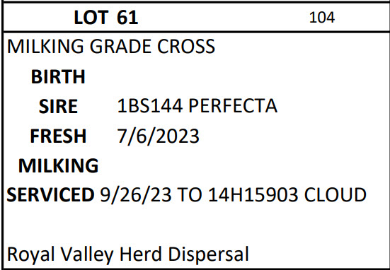 DAIRY COW AND HEIFER SALE - BRUBACKER'S QUALITY DAIRY SALES