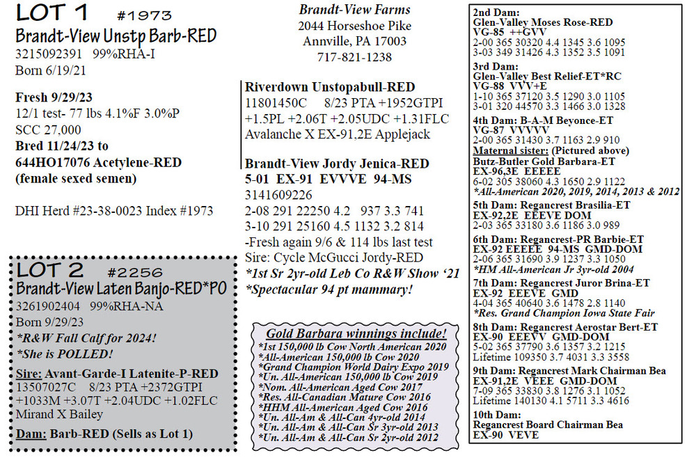 DAIRY COW AND HEIFER SALE - BRUBACKER'S QUALITY DAIRY SALES