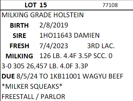 DAIRY COW AND HEIFER SALE - BRUBACKER'S QUALITY DAIRY SALES