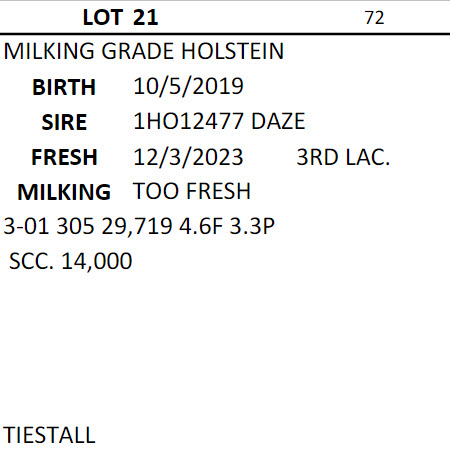 DAIRY COW AND HEIFER SALE - BRUBACKER'S QUALITY DAIRY SALES
