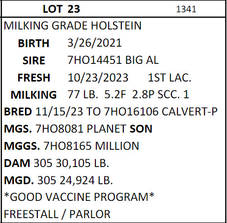 DAIRY COW AND HEIFER SALE - BRUBACKER'S QUALITY DAIRY SALES