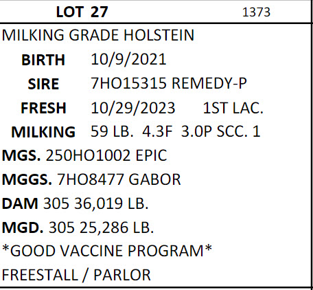 DAIRY COW AND HEIFER SALE - BRUBACKER'S QUALITY DAIRY SALES