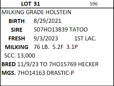 DAIRY COW AND HEIFER SALE - BRUBACKER'S QUALITY DAIRY SALES