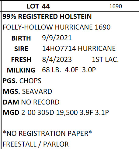 DAIRY COW AND HEIFER SALE - BRUBACKER'S QUALITY DAIRY SALES