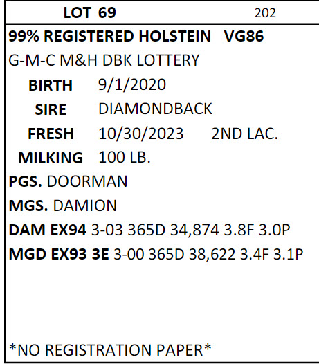 DAIRY COW AND HEIFER SALE - BRUBACKER'S QUALITY DAIRY SALES