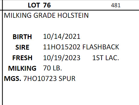 DAIRY COW AND HEIFER SALE - BRUBACKER'S QUALITY DAIRY SALES