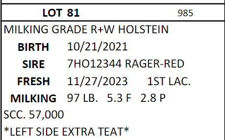 DAIRY COW AND HEIFER SALE - BRUBACKER'S QUALITY DAIRY SALES