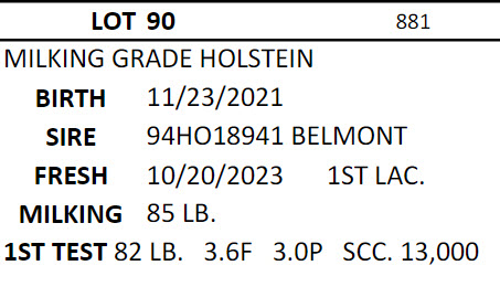 DAIRY COW AND HEIFER SALE - BRUBACKER'S QUALITY DAIRY SALES