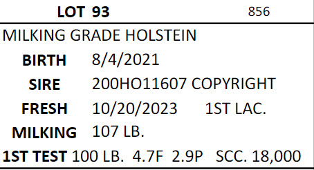 DAIRY COW AND HEIFER SALE - BRUBACKER'S QUALITY DAIRY SALES