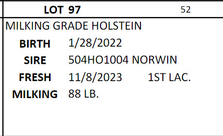 DAIRY COW AND HEIFER SALE - BRUBACKER'S QUALITY DAIRY SALES