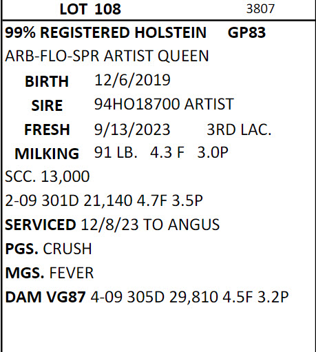 DAIRY COW AND HEIFER SALE - BRUBACKER'S QUALITY DAIRY SALES