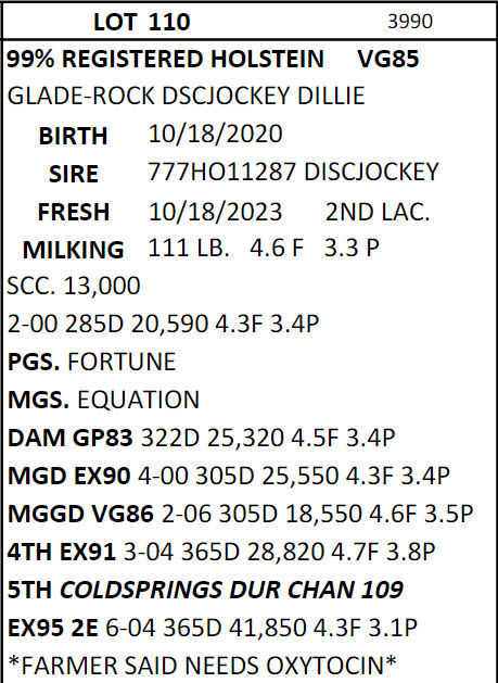 DAIRY COW AND HEIFER SALE - BRUBACKER'S QUALITY DAIRY SALES