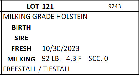 DAIRY COW AND HEIFER SALE - BRUBACKER'S QUALITY DAIRY SALES