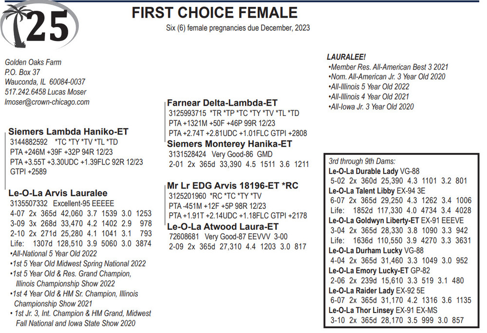 FIRST CHOICE FEMALE Six (6) female pregnancies due December, 2023