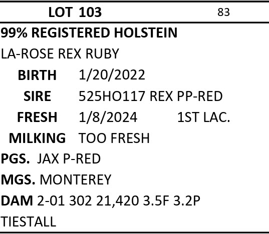 DAIRY COW AND HEIFER SALE - BRUBACKER'S QUALITY DAIRY SALES